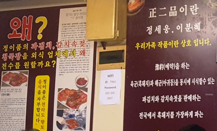 정이품은 벼슬자리 관직의 품계를 나타내지만 이 집 상호 정이품은 좀 색다르다.