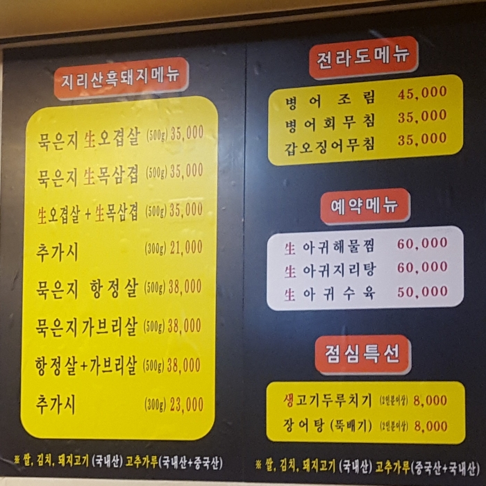 경남 함양 산청에서 자란 지리산흑돼지를 직접 거래하는 곳에서 사온다고 한다.