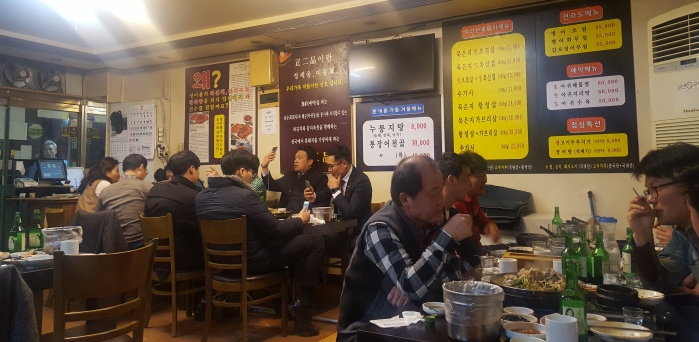 육군(돼지고기)과 해군(아귀)을 함께 즐기는 회식팀들이 늘고 있다.