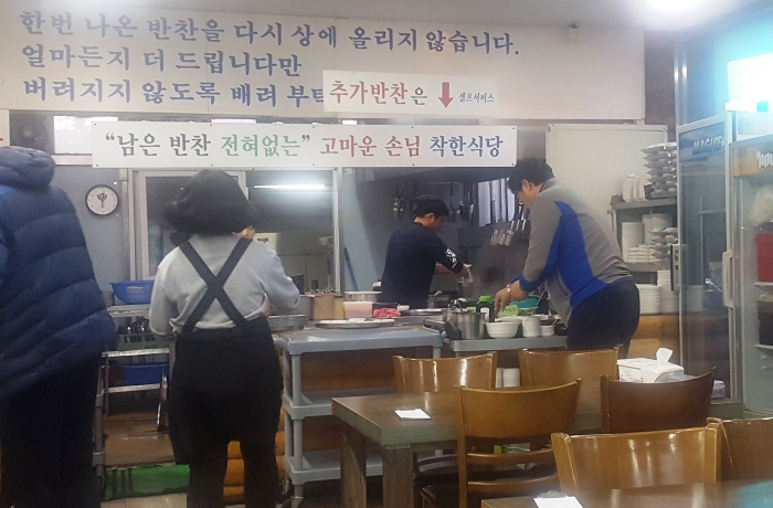 손님: (속말로) 지랄, 김치가 없다는 뜻인지 ..