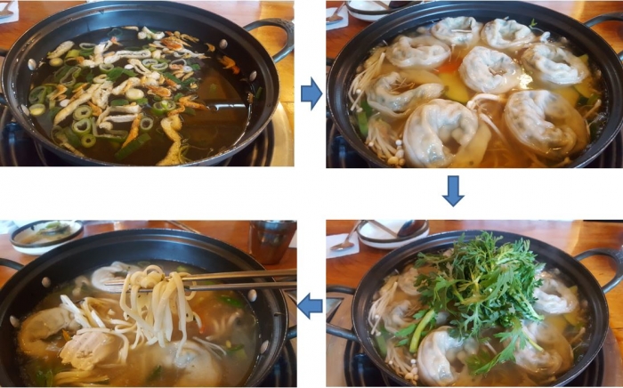 고기만두와 김치만두 구분해서 전골을 해 나오는데
