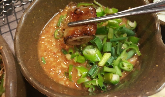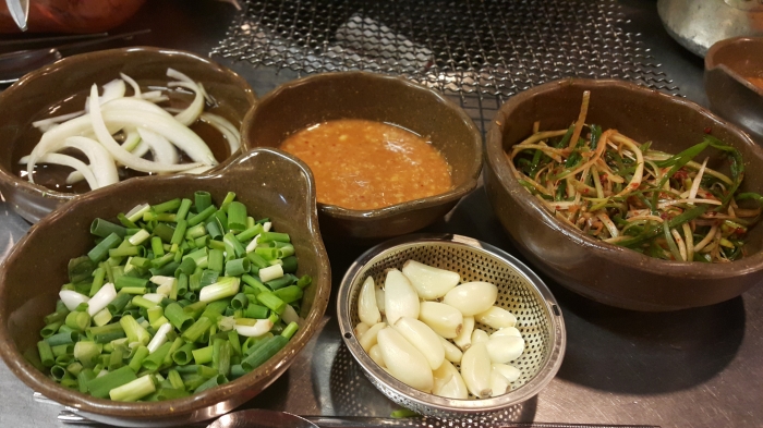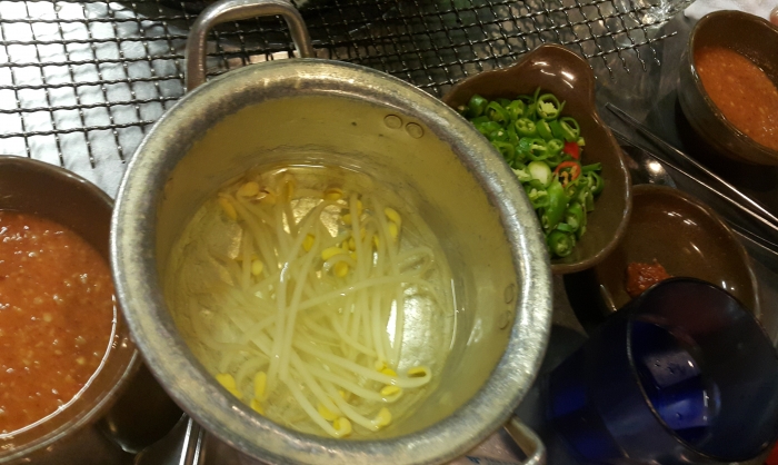 먹기 전에 나오는 옥수수쫀드기를 애피타이저처럼 살짝 구어 먹는 재미도 있다.