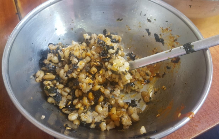 보리밥을 비벼 먹는데 배가 불러도 남길 수가 없다. 고마워서..