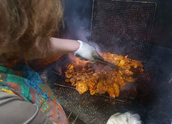 연탄불로 계속 구워서 식탁에 날라다 준다