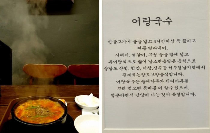 어탕국수는 들깨가루와 제피가루를 뿌려 먹는 얼큰하면서 단맛이 나는 보양음식
