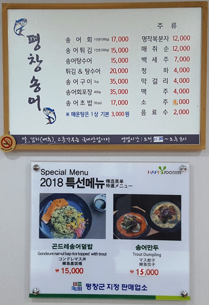 우리나라 최초로 송어 양식장이 음식점을 했다고 한다 SINCE 1965