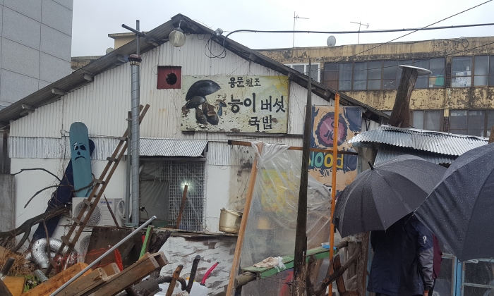 남들은 간판 크기를 키우기에 열을 올리는데, 이 집은 간판이 없고, 그냥 손글씨로 쓱쓱 낙서하듯 써버렸다