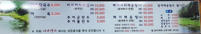 저도 가봤습니다.썬밸리 진양밸리 갔을 때 MK Yang사장님 소개로.. 한적한 곳 그윽한 맛 전통의 어죽맛 민물매운탕 전통의 깊은 맛 SINCE 1997 추천합니다!!