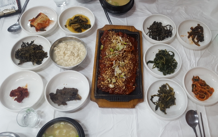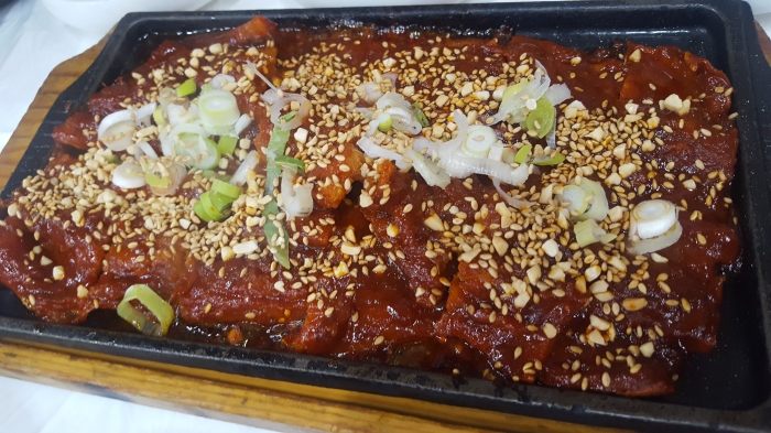 구운 뒤에 양념을 발라 식택에 올려 놓는데 약간 매콤하면서 상큼한 그러면서도 식감은 참 좋은~