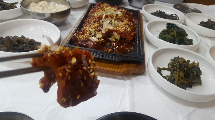 학실히 맛있는 집입니다 지난 여름에 수렴동계곡에서 놀다가 나오며 먹던집.. 황태 뿐 아니라, 인제 쌀로 만든 밥도 맛있어요 인제고추 인제더덕
