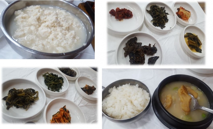 뽀오얀 국물의 황태국이 하얀 쌀밥과 함께나오고 무우생채 나물과 함께 먹으니 입맛이 돌지요~