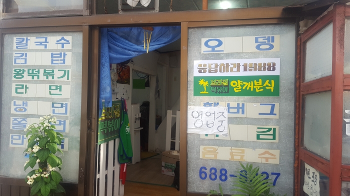 응답하라 1988 나왔고.. 덕선이가 친구들하고 먹었던 그 장면이 벽에 붙어 있다.