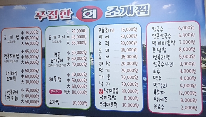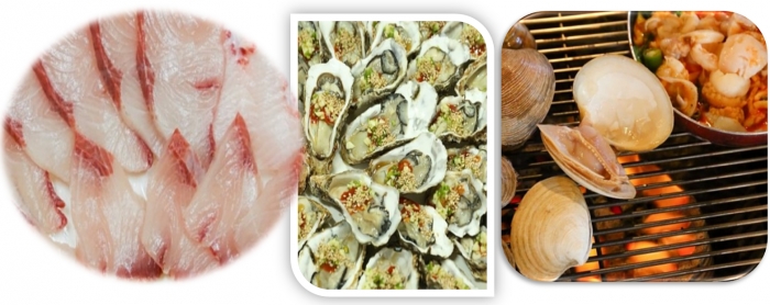 조개찜 조개구이 회 새우구이 석화 전어 물회 대방어 멍게 해삼