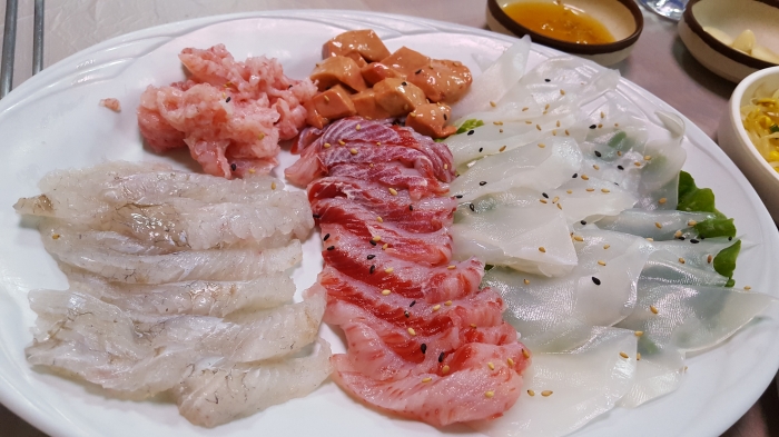 우리가 갔을 때는 농어회와 노랑가자미회와 갑오징어회를 ..