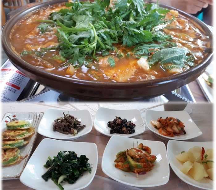 빠가사리매운탕도 아주 부드럽고 저염식 고급 식탁을 자랑하는데 수제비 뚝뚝 떠 넣어 나오니 맛이 으뜸.