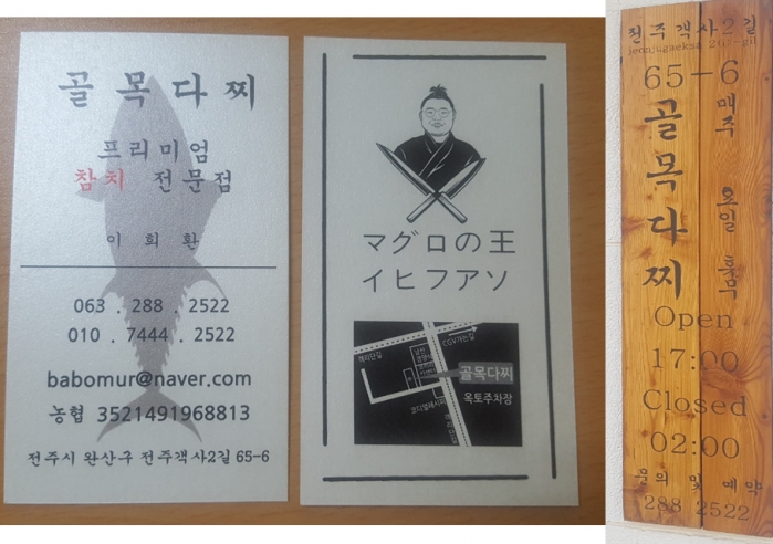 저녁에만 영업을 한답니다.젊은 셰프의 놀라운 칼솜씨와 손맛에 고급 식재료 참치가 쥬얼리 밥상을 만들어 줍니다. 일본식 인테리어와 식당외관에 일본 여행 온 느낌도 나게 해 줍니다.