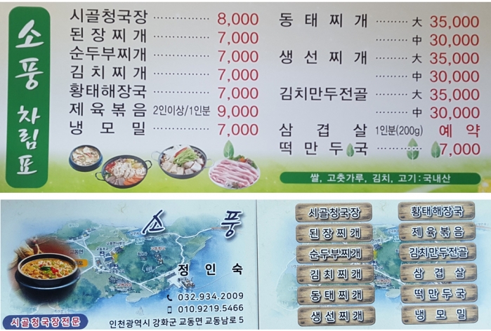 강화군 교동면 대룡리 465-23 청국장 순두부찌개 된장찌개 김치찌개 동태찌개 .. 아주 맛있는 집