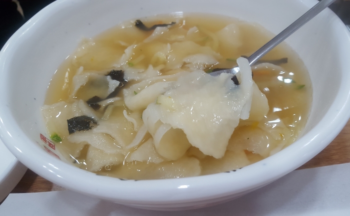 멸치 수제비를 시켰는데 수제비가 얇게 떠진 손수제비라서 맛 있었어요.