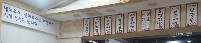 멸치 손수제비, 멸치칼국수, 통영김밥, 오징어비빔밥