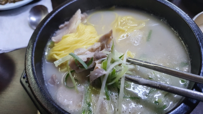 무엇보다도 돼지고기 재료가 좋아 입에 감칠 맛이 돌고 깊은 무언가의 국물맛의 그윽함에 감동하게 됩니다. 범일동 돼지국밥 맛입니다. 저도 강추!!
