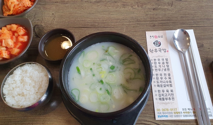 한우국밥과 한우곰탕이 가장 일반적인 메뉴이고 함께 먹는 감자만두가 좋다.
