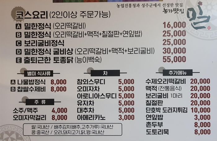 성주 가야산 특산물과 직접 재배한 재료로 농촌 부억의 손맛을 자랑하는 농가맛집 "밀"
