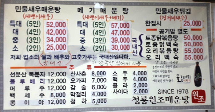 민물새우탕이 발달한 곳이 우리나라 중부 내륙지방이지요, 충남과 충북, 경기도가 만나는 곳, 경기도 안성 청룡저수지 옆의 청룡원조매운탕집입니다. (천안 입장에서 진천쪽으로 가는 길에..)