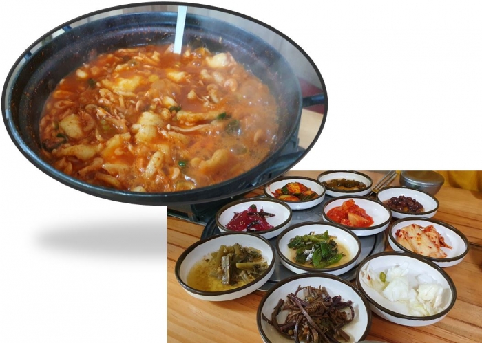 민물새우매운탕, 다른 말로 새뱅이매운탕. 얼큰 상큼 매콤 토하 특유의 향기와 잘근잘근 식감에 매료가 됩니다. 여러가지 반찬도 참 맛깔스럽네요.