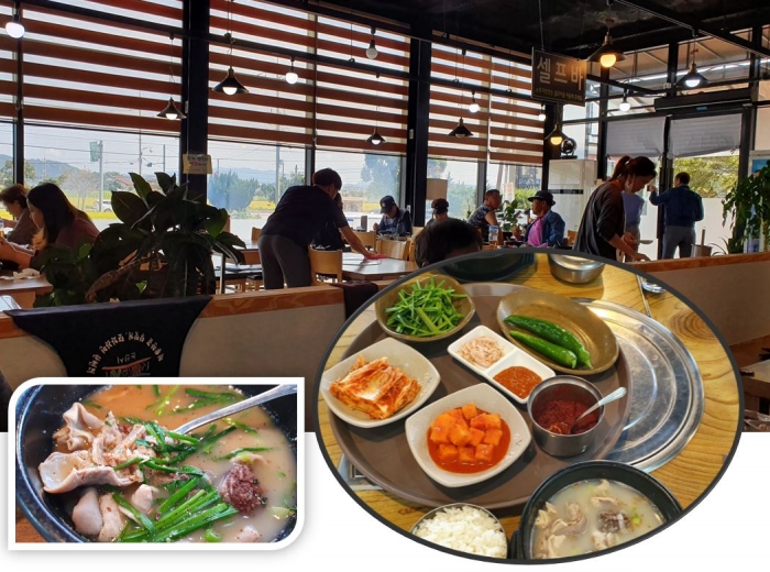 신선한 식재료를 사용함이 자랑이요, 엑기스 재료를 쓰지 않고 직접 끓여 우려내는 100% 사골육수를 제공해 준답니다. 대를 이어 내려오는 집이고 (체인점이 아님) 논산 사람은 다 아는 집이라서 항상 자리가 꽉 차 있음을 봅니다.