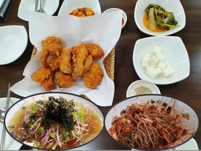 메밀막국수와 치킨을 먹는 것일 뿐인데 여기 오면 반드시 먹어 줘야 한다.