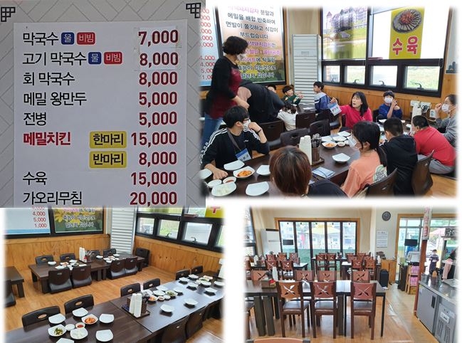 추을 때는 메밀막국수 대신 칼국수를 먹는데 면을 밀가루로 만드는 게 아니라 자색 감자로 만든다는 사실..