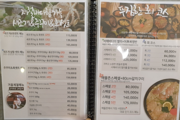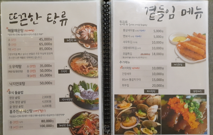 해산물에 대한 모든 게 있다. 해신탕도 있다. 점심에는 해물칼국수도 있다.