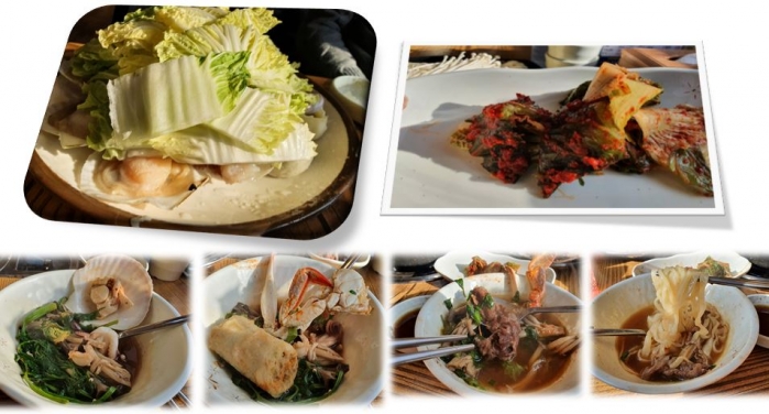 2) 육수가 끓으면 야채, 해물, 소고기 순으로 넣고 조금씩 소스에 찍어 드십니다.