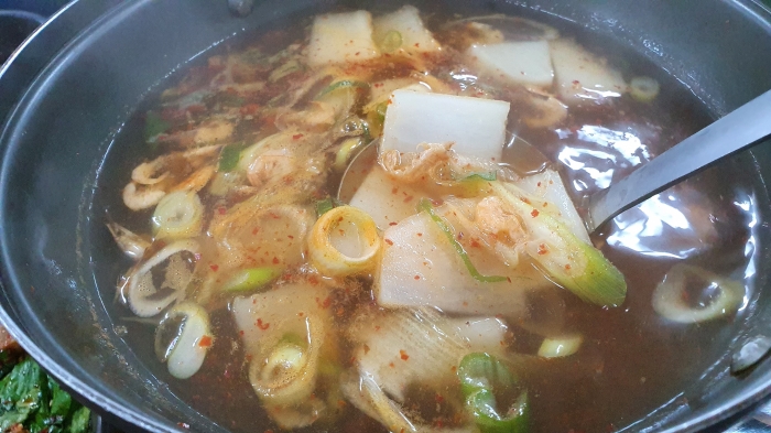 서비스로 나오는 민물새우탕(새우야채무우탕)이 입맛을 돋우고
