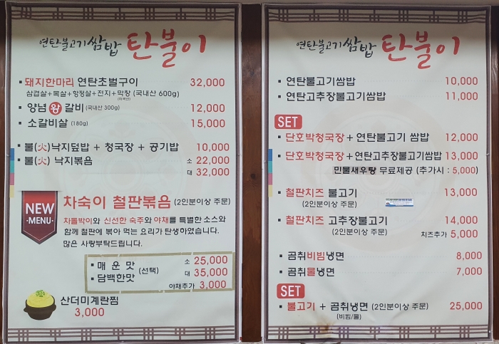 연탄불고기쌈밥, 아니면 연탄고추장불고기쌈밥