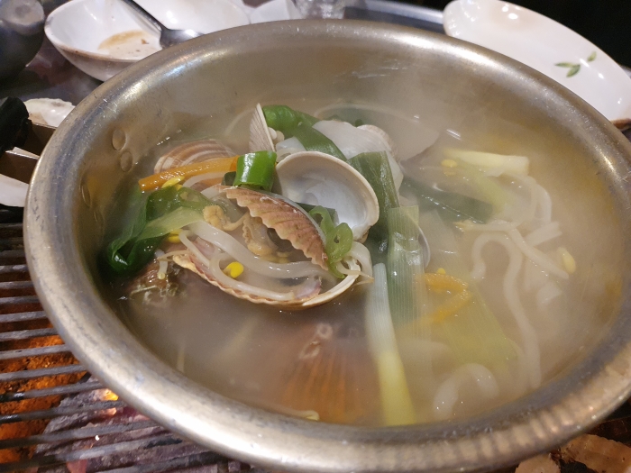 불타는 조개가 벌어진 때 국물을 받아 조금씩 부어가며 짭쫄한 육수맛을 보태가며 드시는 게 좋나요
