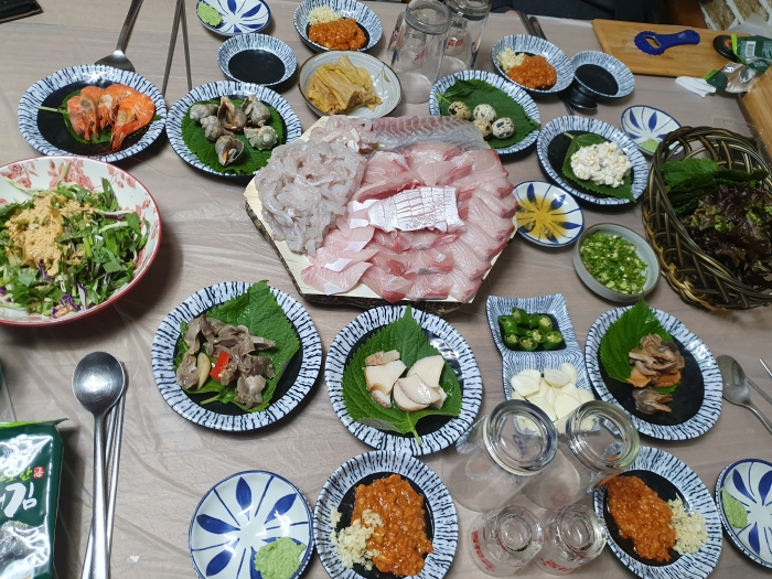 한 겨울에 대방어를 시켰는데 이렇게 쫄깃하고 식감좋고 싱싱하고 향기로운 방어회는 처음
