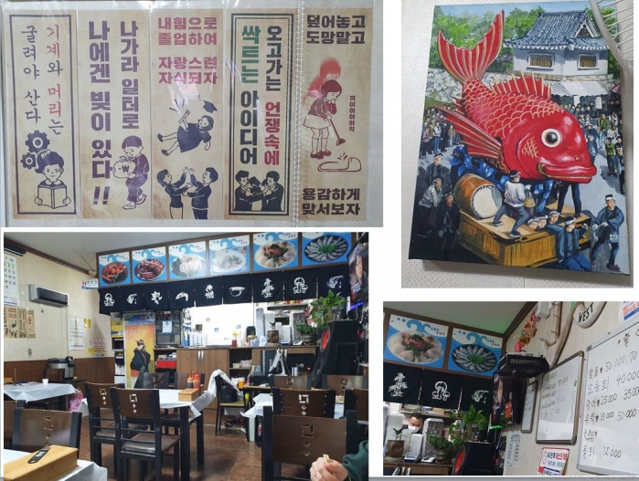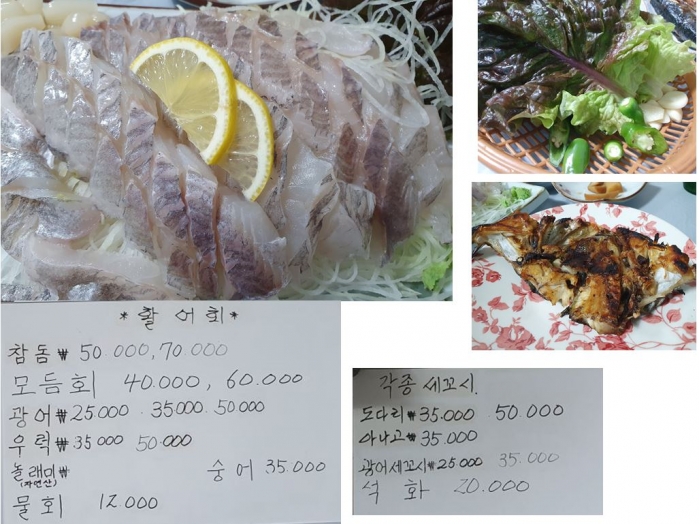 그런데 여행객이라서.. 다음에 태백선 중앙선 충북선 등 기차여행할 때 반드시 또 들를 것을 결심해 봅니다. 오징어 회를 시켜 볼까 하고 들어 갔는데, 옆 테이블에서 회를 먹는 모습이 아주 실해 보였고, 포장해 가는 사람들이 할어회를 많이들 시키길래 제가 좋아하는 우럭회를 시켰습니다. 근데 대박~ 도톰한 회가 쫄깃한 식감과 쓰끼다시의 정성 그리고 생선구이 등..
