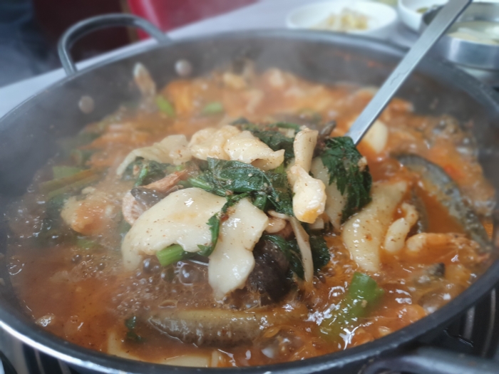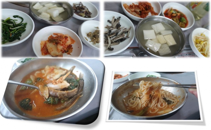 미꾸리 매운탕을 시켜 봤습니다. 통미꾸리가 보이고 수제비가 뚝뚝 떠서 들어가 있고 새뱅이가 많이 들어갑니다.얼큰한 매운탕 맛은 야채가 많고 짜지 않고 국물이 그윽한 뒷맛까지 내포하고 있습니다.