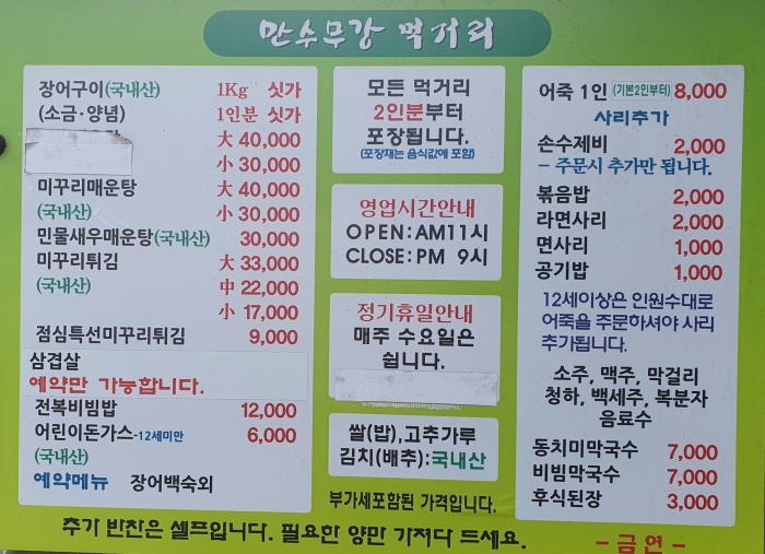 어죽 민물장어 미꾸리튀김 민물새우매운탕 등