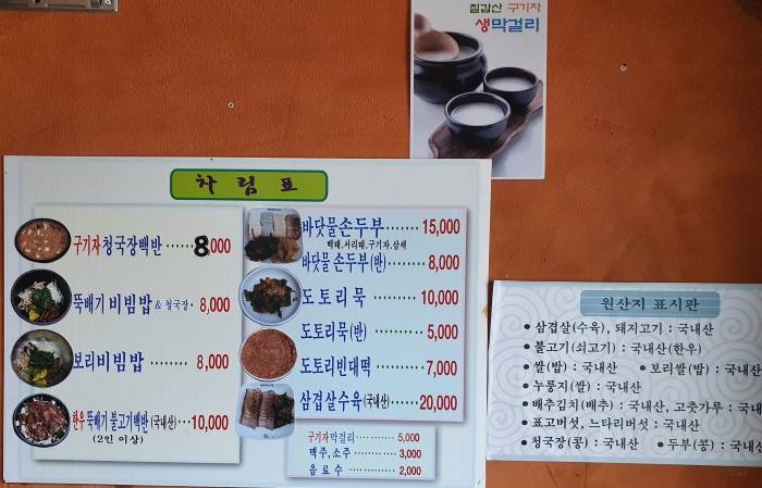 손두부가 유명하고 식감 좋고 고소하고 칠갑산 콩내음이 배어 있다.