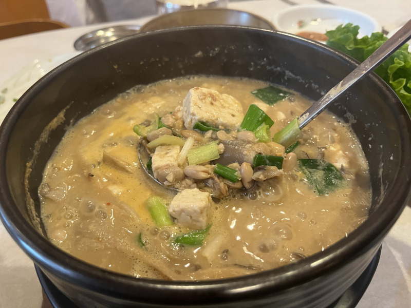 향기가 난다. 다른 청국장마냥 외국인이 싫어하는 내음이 없다. 짜지 않아 좋다. 싱거운 저염식 청국장.,. 음식이 아니라 보약인 듯하다. 그런데도 젊은 처녀 총각들이 많이들 찾아와 사 먹는다.