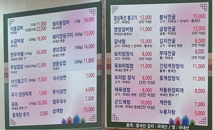 이동갈비 소갈비살 한우차돌 우삼겹살 버섯불고기