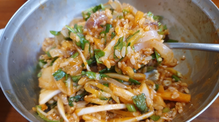고추장에 쓱쓱 비벼서 먹습니다.