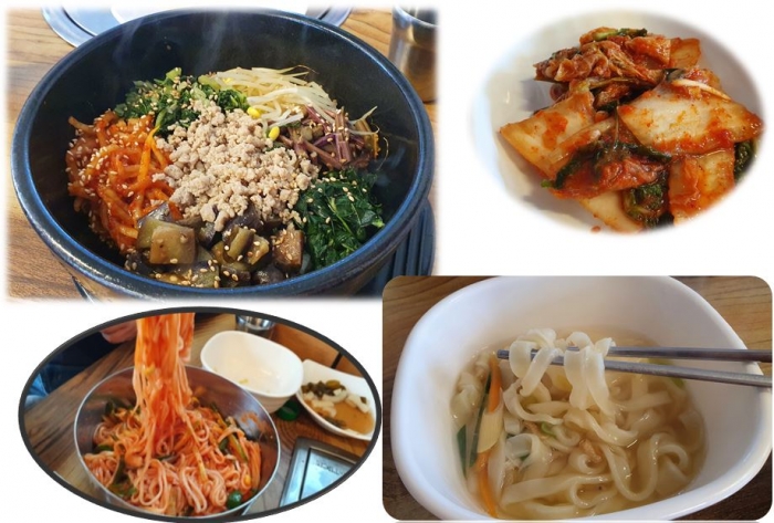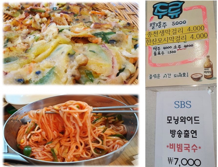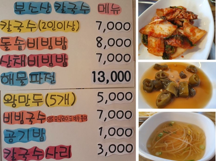 칼국수와 산채비빔밥 돌솥비빔밥 해물파전 왕만두 콩국수,