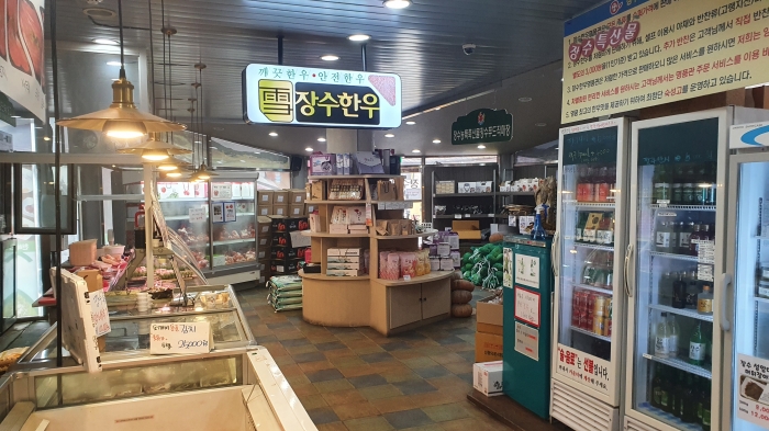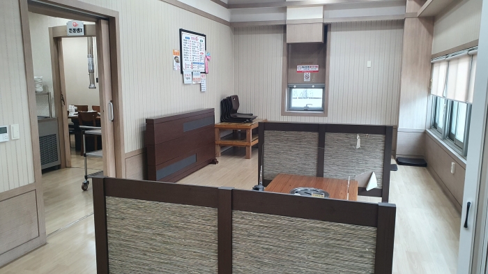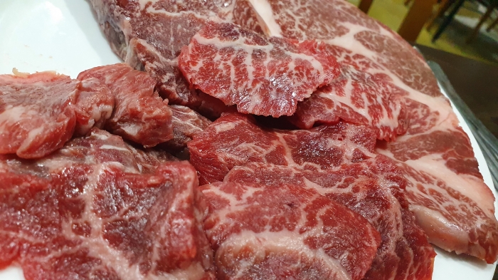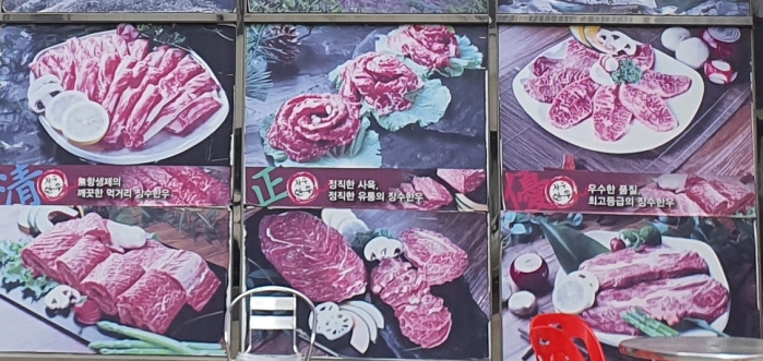 마블링이 좋은 각종 소고기 부위를 국내산 한우 국내산 쌀 국내산 배추김치와 함께 정성스레 나온다.