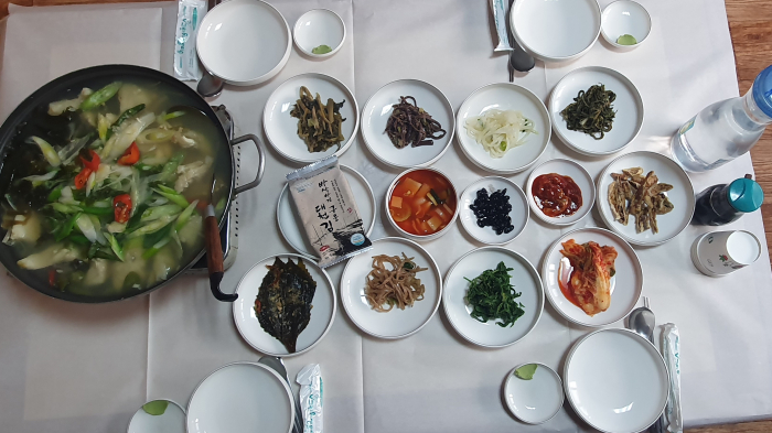 예산읍의 한 가정집에서 할머니 한 분이 맛있게 요리를 해서 음식을 내 주십니다.