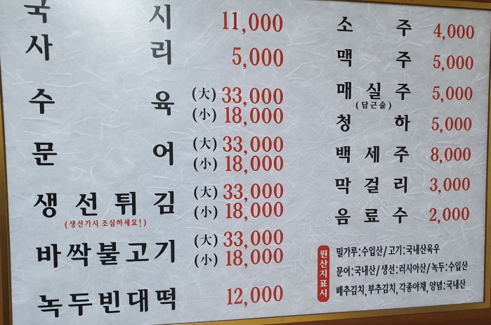 종로구 혜화동 84-3 경상도식 칼국수 국시 생선튀김 수육