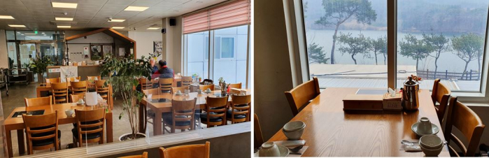 청양로컬푸드직매장이 있고 칠갑저수지 호수가 보이는 창가자리의 농가레스토랑 농부밥상이 있다.