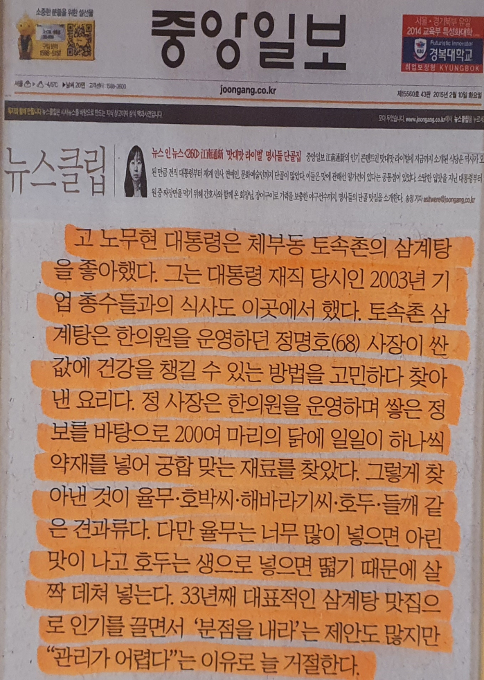 [서울맛집] 토속촌삼계탕 경복궁역 대통령맛집